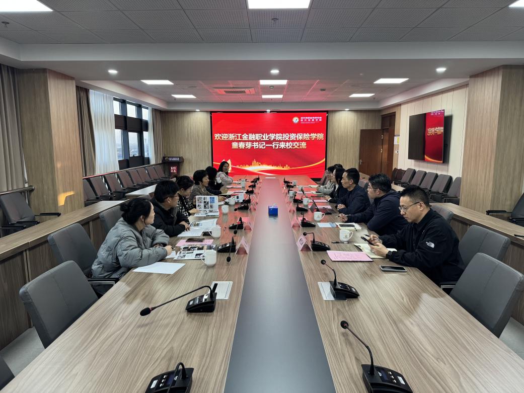--来源:投资保险学院 作者: 日期:2025-11-282025年11月26日下午,投资保险学院党总支书记童春芽一行7人前往绍兴市职业教育中心开展交流座谈,旨在加强院校合作,探索协同发展新路径。绍兴市职业教育中心党委副书记、校长沈蕾热情接待了来访团队。